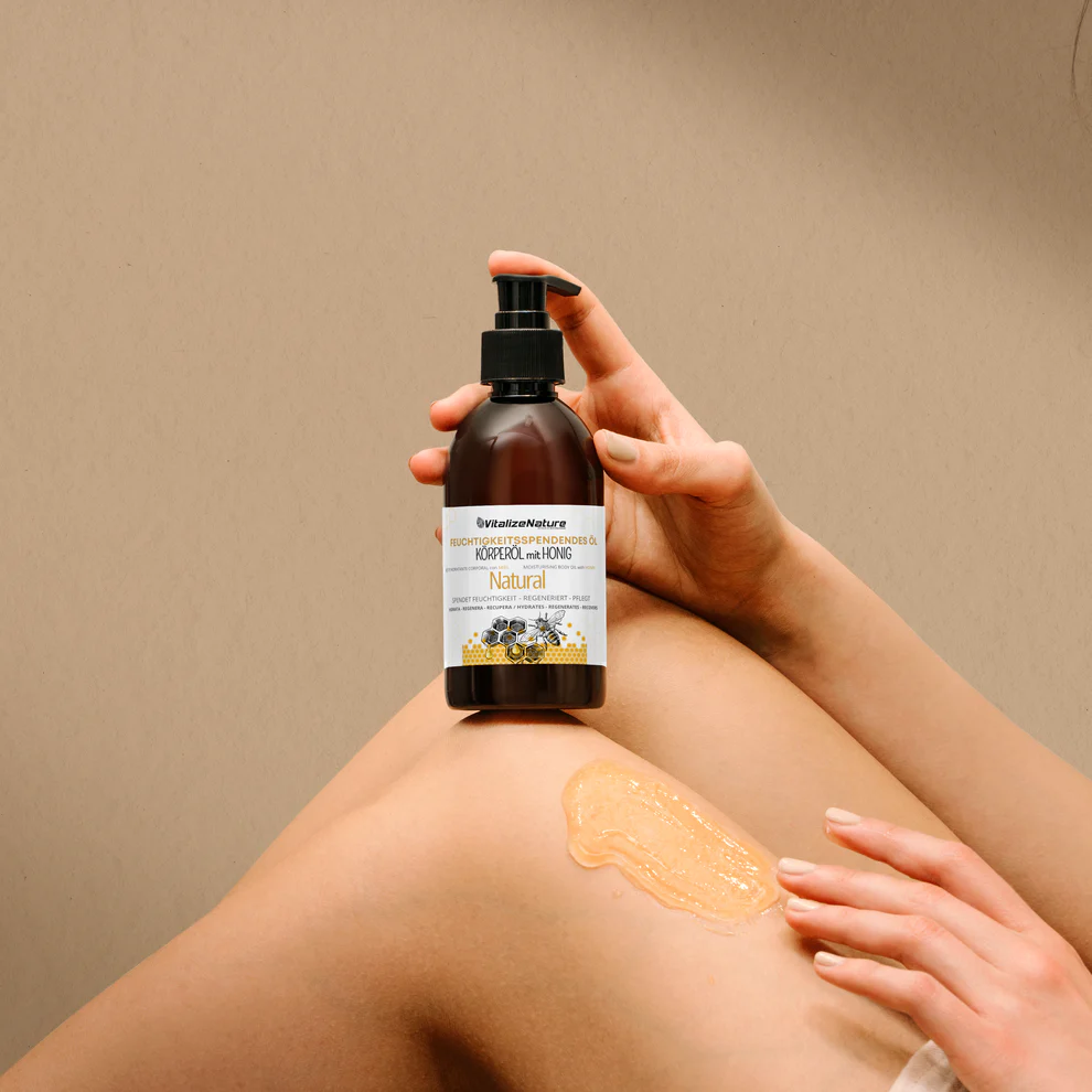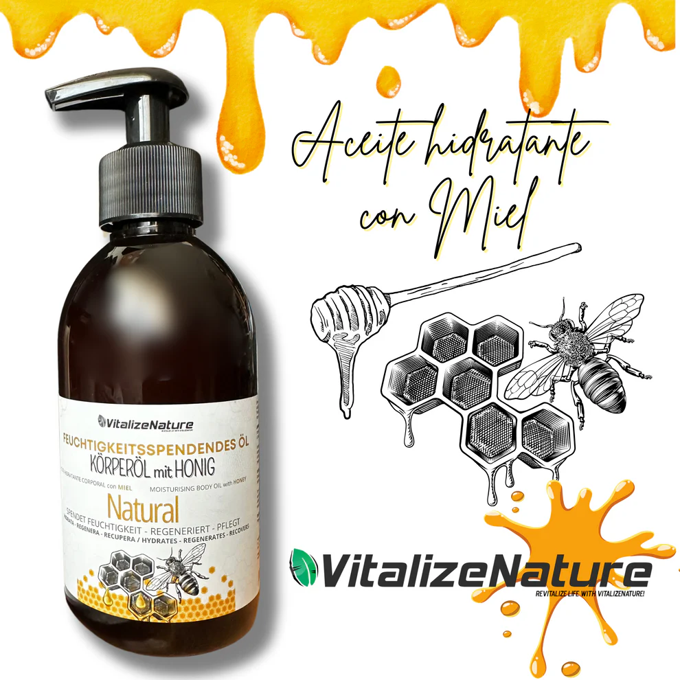 El Aceite Hidratante Corporal con Miel de VitalizeNature combina el poder nutritivo de la miel con aceites cuidadosamente seleccionados para dejar la piel suave, elástica y visiblemente más saludable desde la primera aplicación.